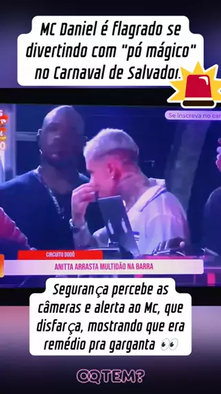 MC Daniel é flagrado se divertindo com "pó mágico" no Carnaval de Salvador. Segurança percebe as câmeras e alerta ao Mc, que disfarça, mostrando que era remédio pra garganta 👀 #mcdaniel #samba #CarnaKwai #ultimasnoticias #salvador