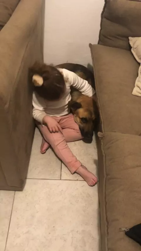 Protegendo o cachorro do rojão.. 🥹❤️#Criança #Menina #dog #fy #viral