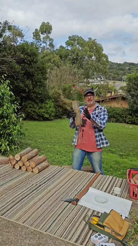 lenhador Raíz, esse afia o seu machado, corta lenha, ascende o fogo para aquecer sua comida. #inverno #rancho #roça #lenhador