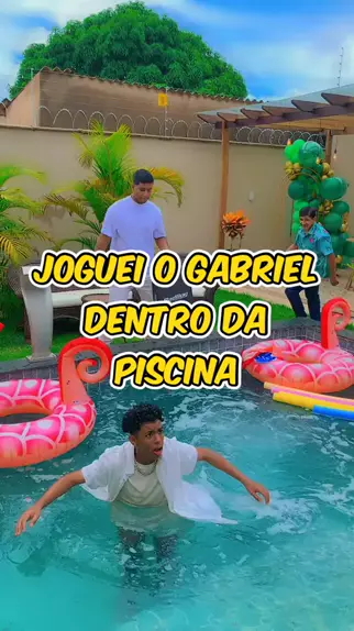 Joguei o Gabriel dentro da piscina