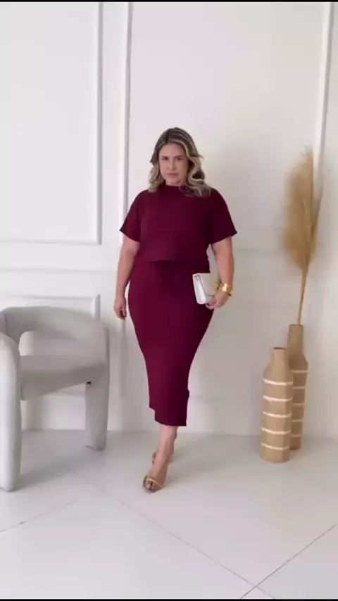 Conjunto Plus Size Feminino saia Midi e blusa #conjuntoplussize #conjuntofemininoplussize #conjuntosaiablusaplussize