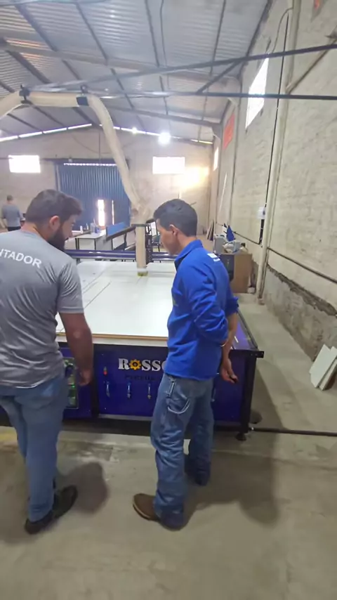 É o fim da esquadrejadeira nas marcenarias? 😱 Veja como essa fábrica automatizou a produção, reduziu a mão de obra e alcançou o alinhamento perfeito usando uma Router CNC. Quer levar esse nível de produção para o seu negócio? Link na bio! 🚀 #cncrouter #rossowcnc #marcenariainteligente