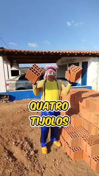 ela segura quatro tijolo