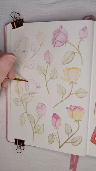 Some watercolor roses 🌹 this is the page opposite to my mood tracker for month of February. It's so cute and so simple I love it! #art #Rose #cute #simple #journaling