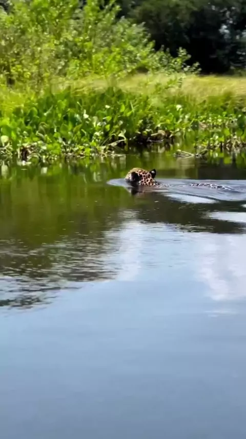 🇧🇷 Filhote de onça nadando no Pantanal - Mato Grosso 🇺🇸 Jaguar cub swimming in the Pantanal - Mato Grosso 📸 @wildjaguarphotosafaris #onçapintada #caimanpantanal #pantanal #jaguars #bigcats