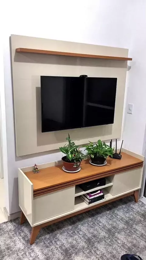 Painel Ripado para TV até 50 Polegadas com Nicho e Prateleira Ideal Sala Quarto Suporte Estante #painel #ripado #tv