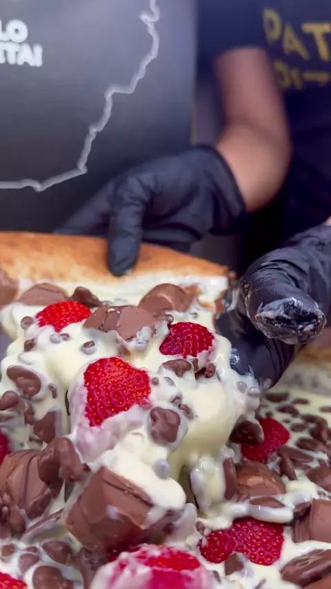Uma pizza feita com tudo de mais gostoso que você pode imaginar. Pronta para te fazer delirar a cada mordida e agora com a nossa edição especial com morango🫶🏻🍕❤️ #pizzapatos #patospizza #pizza