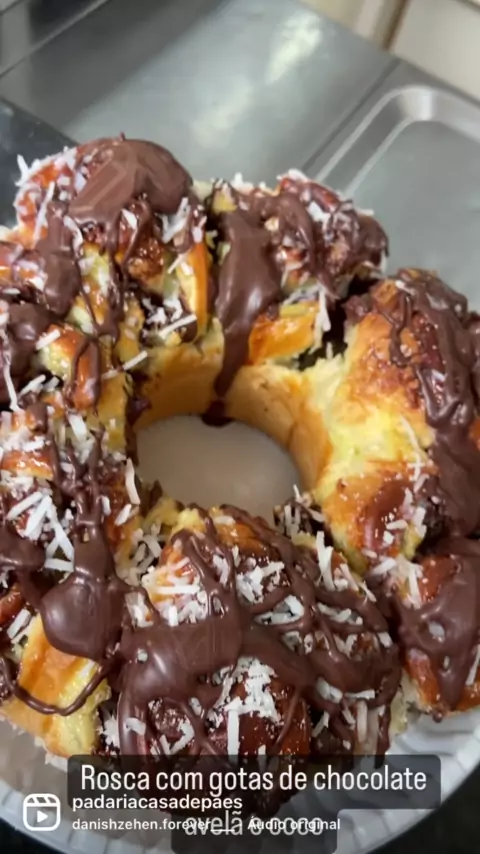 Rosca com gotas de chocolate e creme de avelã e coco. Padrão Casa de Pães de qualidade.