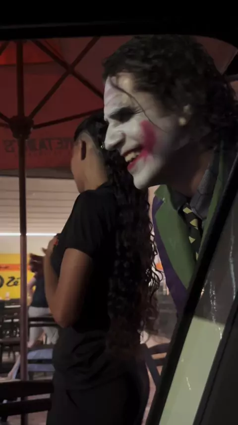 Viu… Eu nem sou tão vilão assim! Tive que sair do personagem para falar com ela 🃏🤪 #joker #Coringa #heathledger #palmeiradosindios