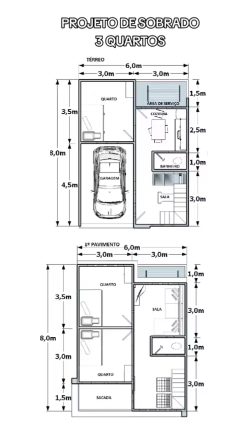 Projeto de sobrado 6x8 #projetodecasa #projetosdecasas #plantabaixa #casa #casadeluxo