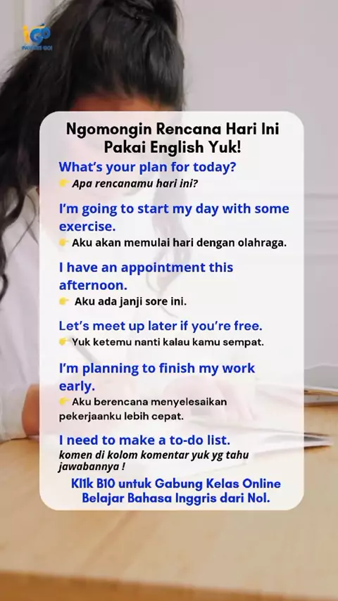 Pernah bingung mau bilang “rencana hari ini apa?” dalam bahasa Inggris? 🤔 Yuk belajar Daily Expressions: Planning the Day biar speaking kamu makin Update! #DailyEnglish #BelajarBahasaInggris #EnglishExpressions #Indonesia #inggrisgo
