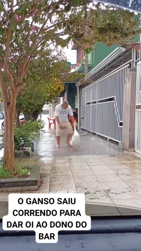 mesmo chovendo não atrapalhou o ganso da Oi para o dono do bar #pets #animais #entretenimento #viral #ganso