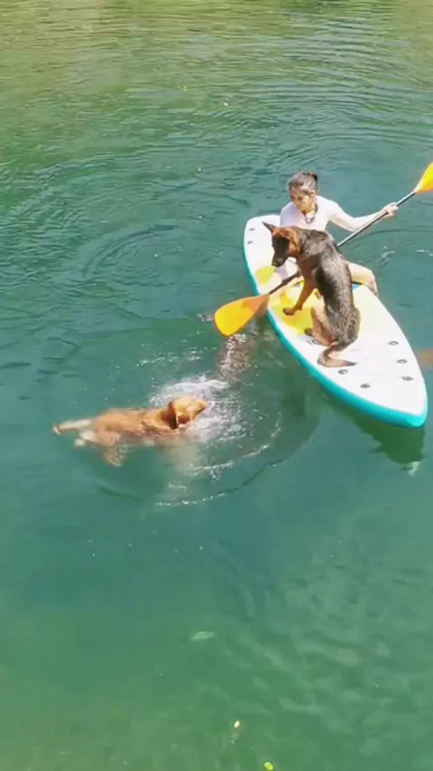 a dona desse cachorro ficou preocupada que ele ia para o seu encontro para ficar na prancha de repente ele quase se afoga #pets #dog #viral