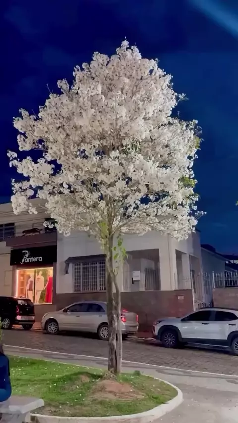 A beleza do ipê branco à noite 💮🤍🌙 #floradadeipes #ipebranco #árvoreFlorida