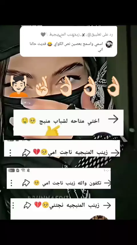 رد على @⇣✘↵زيـ℘ـنب المنـܔبجيۿ 𓆩🖤(O150001719710352)