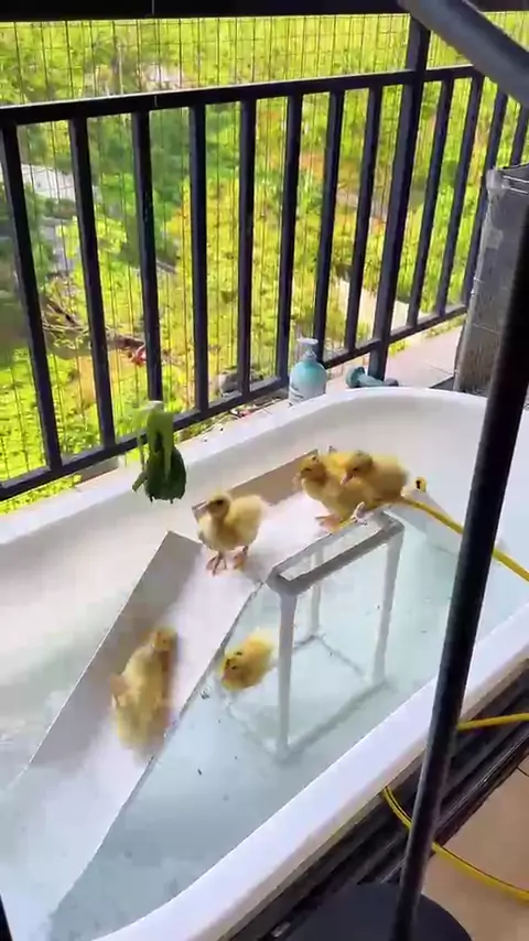 鸭子游乐园 边吃边运动,不长肉!#鸭子洗澡 #鸭子游乐园 #养小黄鸭 #小鸭子游泳池