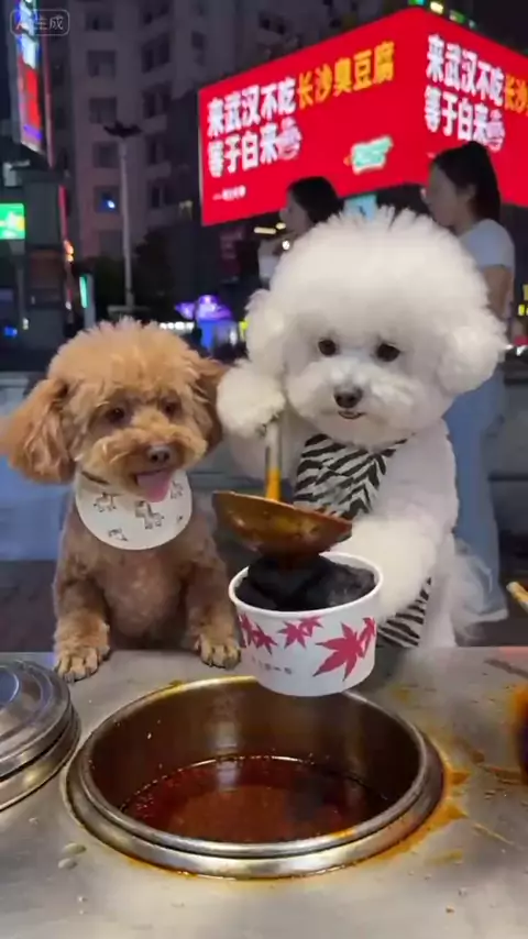 老板,炸份臭豆腐!小比熊的臭豆腐小摊!小助手越来越能干啦! #AI小狗 #摆摊日记 #街头小吃 #狗子成精了