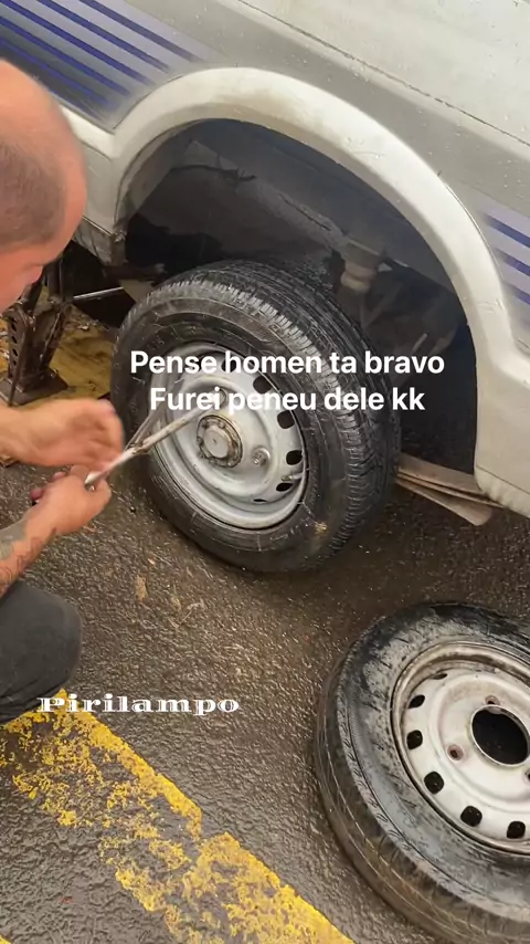 Passei numa pedra furo peneu kkk do carro dele