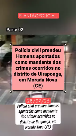 Polícia prende suspeito de mandar crimes em Morada Nova e dupla por roubo com restrição de liberdade em Fortaleza Nesta segunda-feira (28), a Polícia Civil do Ceará, com apoio da Polícia Civil de São Paulo, prendeu um dos homens apontados como mandante dos crimes ocorridos no distrito de Uiraponga, em Morada Nova (CE). Ainda no fim de semana, no sábado (26), uma ação rápida da Polícia Militar do Ceará (PMCE), com apoio do Núcleo de Vídeomonitoramento (Nuvid) da Ciops/SSPDS, resultou na prisão