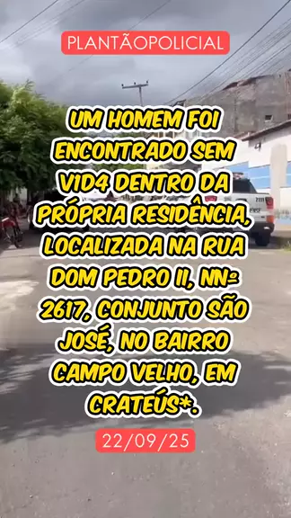 Na madrugada desta segunda-feira (22), um homem foi encontrado sem vida dentro da própria residência, localizada na Rua Dom Pedro II, nº 2617, Conjunto São José, no bairro Campo Velho, em Crateús*. A vítima foi identificada como Antônio Paulo de Sousa Vieira, de 44 anos, natural do município, filho de Maria dos Prazeres de Sousa Vieira e Francisco Arizomar Vieira dos Santos. Ele residia no mesmo endereço onde foi localizado. #noticiasdeultimahora #últimasnotícias #notícia #flagrante #homicídio
