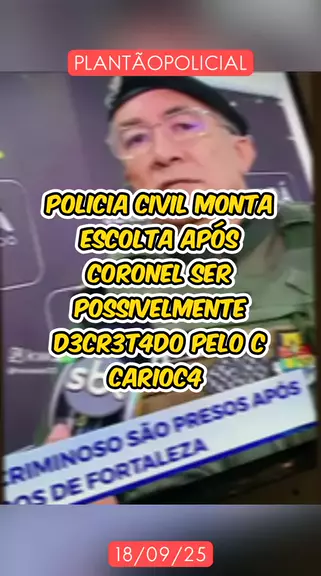 POLICIA CIVIL MONTA ESCOLTA APÓS CORONEL SER DECRETADO PELO CV A Polícia Militar do Ceará (PMCE) e a Polícia Civil realizam escolta 24 horas na residência de um coronel da PM, após a circulação de mensagens em grupos criminosos decretando a morte do oficial. O conteúdo, atribuído ao Comando Vermelho (CV), repercutiu nos últimos dias e levantou preocupações quanto à segurança do militar. Equipes da inteligência da PM trabalham na identificação dos responsáveis pela ameaça. As forças de seguran