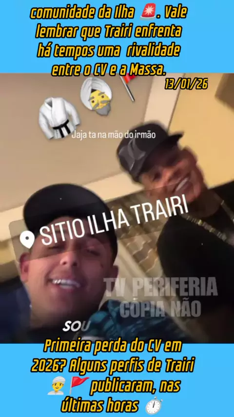 Primeira perda do CV em 2026? Alguns perfis de Trairi 👳♂️🚩 publicaram, nas últimas horas ⏱️, stories e notas no Instagram afirmando que irão retomar a comunidade da Ilha 🚨. Vale lembrar que Trairi enfrenta há tempos uma forte rivalidade entre o CV e a Massa. #jornalismo #News #viraliza #noticias #reportagem