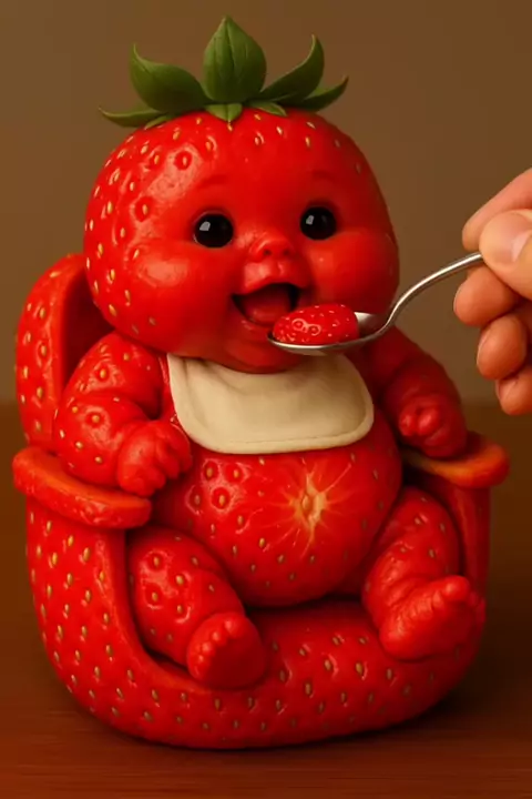 Cute strawberry baby tastes the food and is so happy 🍓🥰 #foryou #cutebaby #fruitbaby #strawberrybaby