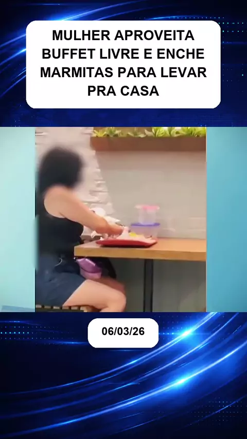 Em um restaurante com buffet livre, uma cliente chamou atenção ao encher várias marmitas para levar para casa.