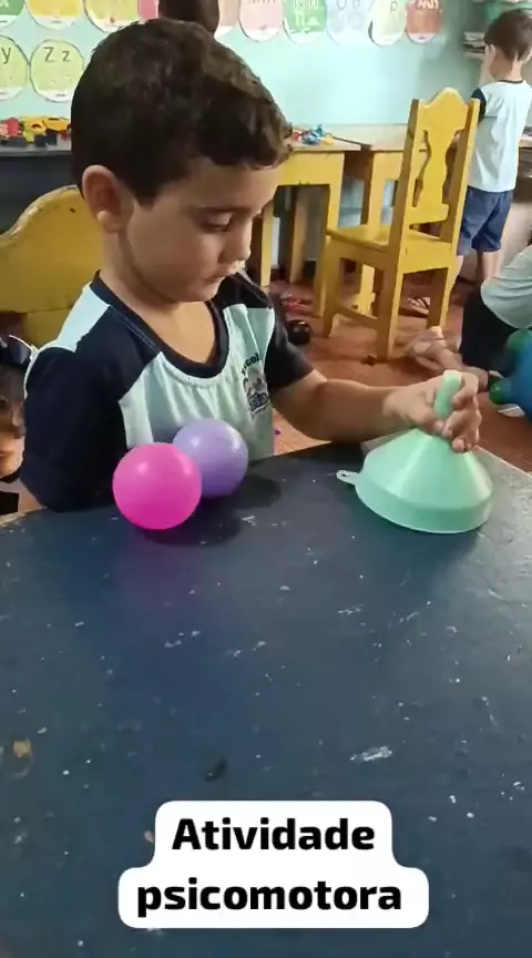Atividade de bolinhas com funil, Trabalha a coordenação motora fina, a atenção,a concentração,o equilíbrio,além da percepção visomotora . escolinha da Tia Ete