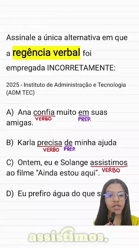 Aprenda a resolver questões de regência verbal!📚 🚀 Siga-me para aprender mais sobre português! 📌 Salve para não esquecer!#questoesdeconcursos#questoes#portuguesparaconcursos#linguaportuguesa#auladeportuguês