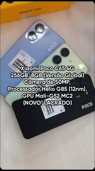 Xiaomi Poco C65 4G 256GB/8GB (Versão Global) Câmera de 50MP, Processador Helio G85 (12nm), GPU Mali-G52 MC2 (NOVO/LACRADO)