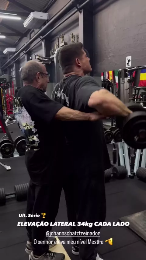 Tenente Breno fazendo elevação lateral com 34 kg com Johan #pumpedandnatural #bodybuilding #tenente #Focado