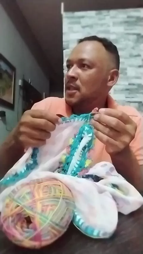 o homem fazendo crochê