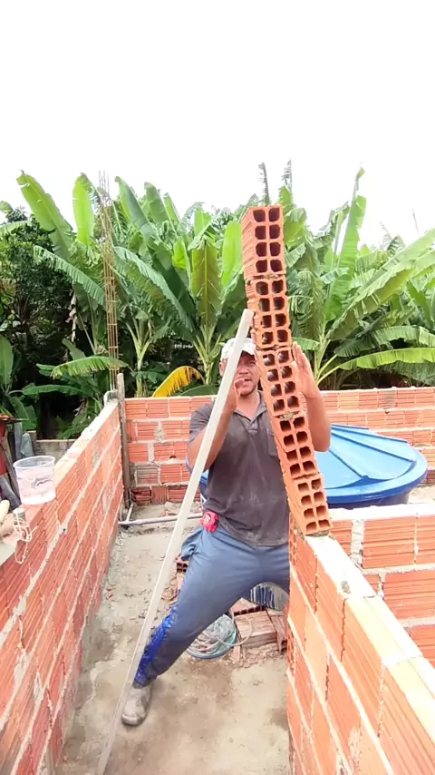 pedreiro manda ajudante segurar parede torta