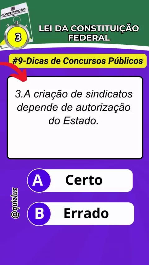 Dicas de Concursos Públicos (#9- Artigo 5º - Lei da Constituição Federal) #quiz #quiztime #direito #concursos #concursospublicos