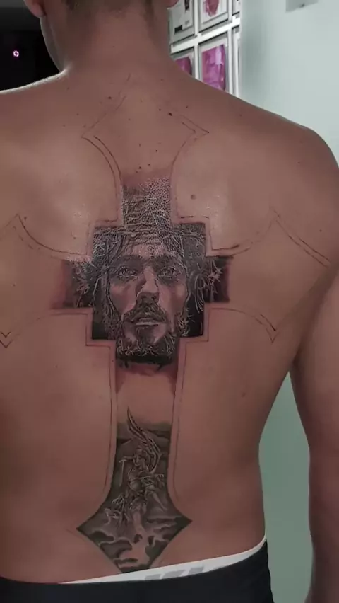 tatuagem religiosa preto cinza pro Sérgio Rabisco #tattoo tattoopretocinza #tattoopretoecinza #tattoojesus
