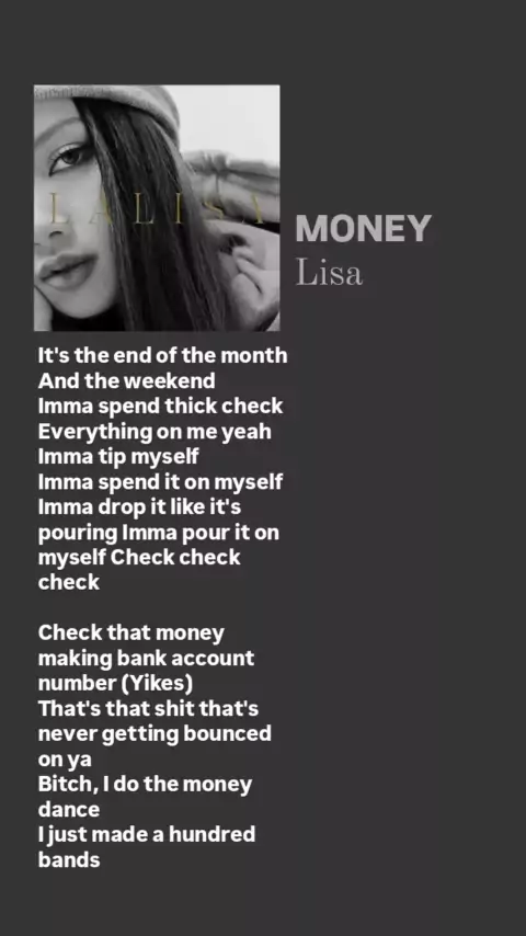 • Money - Lisa • Lyrics#lyrics#money#lisablackpink#lalalalisa_m#kpop#kpoplyrics#kpop#lyricsvideo#lyricskpop#moneylisa##pfy#songlyrics