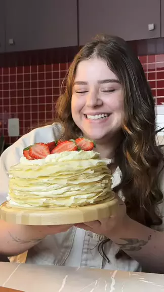BOLO DE CREPEđ€€ Ficou divinoo Ingredientes crepe: - 1 ovo - 500ml de leite - 2 xĂcaras de farinha (xĂcara de 240ml) - 1 colherzinha de essĂȘncia de baunilha (opcional) Ingredientes do recheio de nata - 2 potes de nata (600g) - 5 colheres de açĂșcar A nata precisa estar bem gelada Ingredientes da geleia - 500g de morangos frescos ou congelados - 4 colheres de açĂșcar - 1/2 xĂcara de ĂĄgua - suco de meio limĂŁo #receitas #fy #bolocrepe #confeitaria #confeiteira