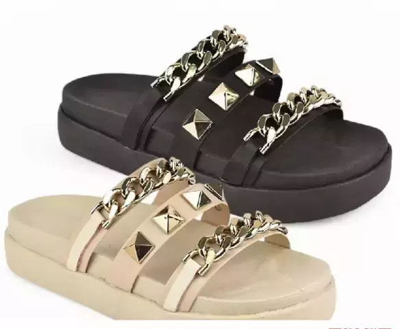 Confira Papete Feminina com Corrente e Spike Chinelo Plataforma ...
