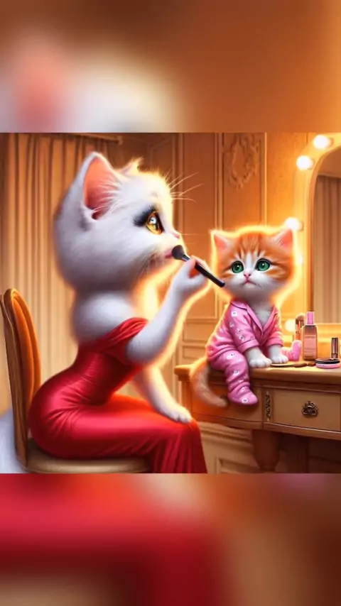 Little Kitten Is Doing Make-up For The First Time 💫🤩🩷#catlover #cat #4upage #ai #viral