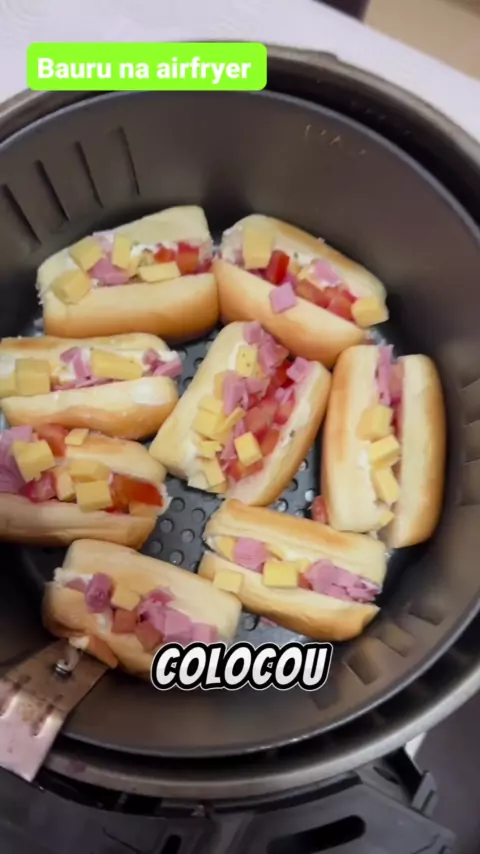 ***BAURUZINHO NA AIR FRYER*** Ingredientes: 10 Bisnaguinhas 100 g de Muçarela ralada ou em cubos 50 g de Presunto ralado ou em cubos 1 Tomate em cubos Requeijão a gosto Orégano a gosto Monta as Bisnaguinhas, 5 minutos na Air Fryer 170°C e Amassa #sanduichecaseiro #baurunaairfryer #lanche #MelhorVideo #maisgolds