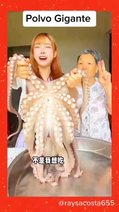 Gente olha o tamanho desse polvo, conseguem comer tudo?? Olha o jeito que ela faz. Esse óleo que ela usa é escuro porque é de gergelim. #polvogigantedopacífico #polvofrito #comidaexotica #ComidaAsiática #viraliza