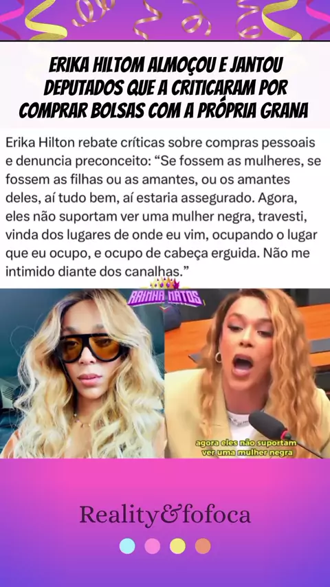 Erika Hiltom rebate críticas de deputados #fofoca