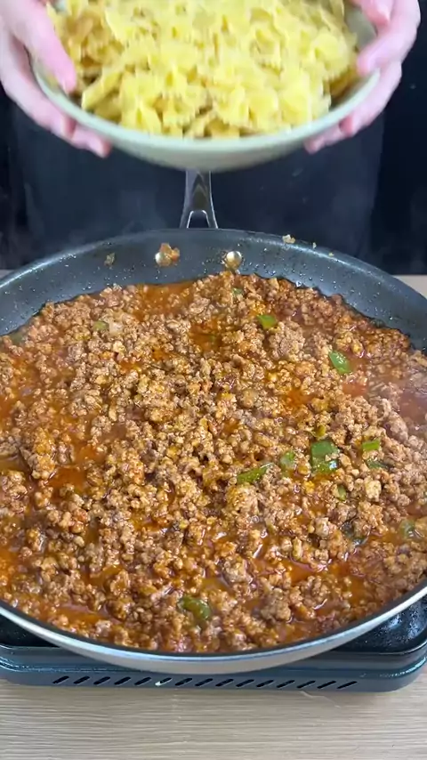 macarrão com carne moída e creme de batata #KwaiChef2025