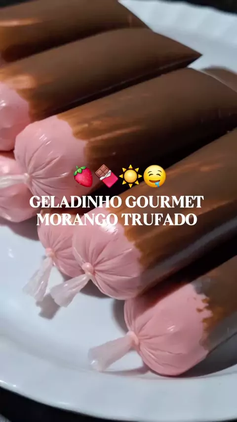 Geladinho guormet de morango trufado🍓🤎 #Receita #geladinho #receitafacil