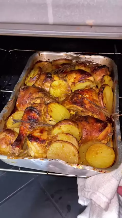 Coxa e sobrecoxa assada com cerveja preta e batata #batata #receita #frango #frangoassado