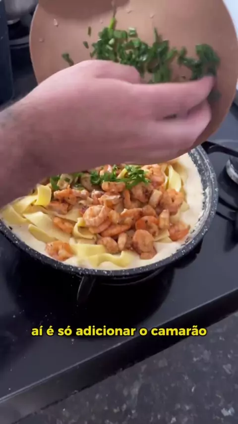 Macarrão fettuccine com camarão ao molho branco. #carioca #ProvaDoLiderKwai #Receita #EstrelaDeFamília