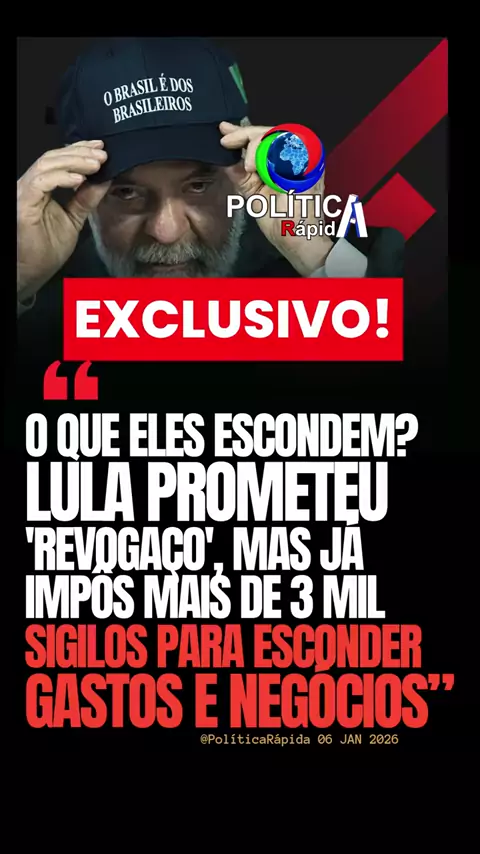 馃毃 URGENTE! 馃挜 A MENTIRA DO REVOGA脟O: O que era promessa de campanha de "restaurar a transpar锚ncia" virou um verdadeiro festival de segredos no governo Lula (PT)! Dados oficiais da Controladoria-Geral da Uni茫o (CGU) e relat贸rios independentes revelam que, entre 2023 e 2025, a atual gest茫o j谩 decretou impressionantes 3.287 sigilos, ignorando a Lei de Acesso 脿 Informa莽茫o (LAI). A M脕QUINA DE ESCONDER DADOS: * RECORDE QUEBRADO: S贸 em 2023, o primeiro ano de mandato, Lula imp么s sigilo de 100 anos em...