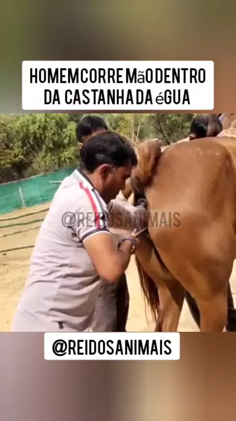 homem corre a mão dentro da castanha da égua #animal #vidaselvagem #egua #NaturezaNoFoco #animaisselvagem