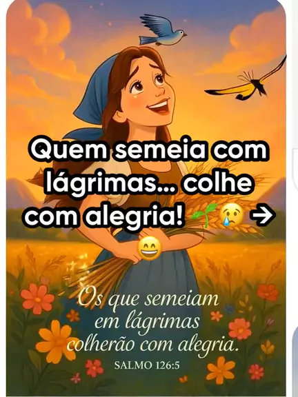 “🌱😢 Quem semeia com lágrimas, colherá com alegria! ‘Aqueles que semeiam com lágrimas, com cantos de alegria colherão. Aquele que sai chorando, enquanto lança a semente, voltará com cantos de alegria, trazendo os seus feixes.’ Salmo 126:5-6 (NVI) 🙏✨ Às vezes a vida dói tanto que parece que estamos plantando sementes no meio do choro, da dor, da luta, da espera que não acaba… Mas Deus vê cada lágrima que cai junto com a semente da fé, da oração, do perdão, do esforço, da perseverança. Ele prome